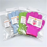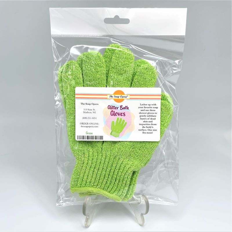 These handy and colorful gloves add a little extra pizzazz to your shower time! Lather up with your favorite soap and use theses shower gloves to gently exfoliate layers of dead skin and impurities from the body's surface. One size fits most.
