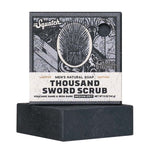 Thousand Sword Scrub: For the Throne! Feel as powerful as the ruler of the Seven Kingdoms with Thousand Sword Scrub. This medium grit bar features Black Volcanic Sand and a bold, confidence-inspiring scent with notes of bergamot, citrus and cedar.