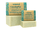 Get soft, glowing skin with a natural exfoliating bar soap fragranced with a fresh and clean Seaweed Eucalyptus scent. Enriched with cocoa butter, shea, and grapeseed oil to cleanse skin without stripping it of its natural moisture. Oatmeal and seaweed provide gentle exfoliation to promote circulation and remove dead skin cells. The pure essential oils provide a relaxing aromatherapy experience. Wrapped in recycled paper printed with soy-based ink