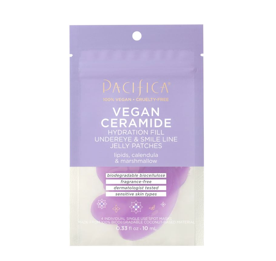The perfect soothing self-care escape for your sensitive skin. Pacifica's dermatologist-tested, fragrance-free, ultra hydrating bio-cellulose undereye and smile line jelly patches are made with vegan ceramides to support your skin’s barrier. With soothing calendula and marshmallow root extract, these smile & undereye patches help hydrate & repair skin while helping to reduce puffiness. This resealable pack contains 4 patches for multiple uses – pop in the fridge when your skin needs some extra support.