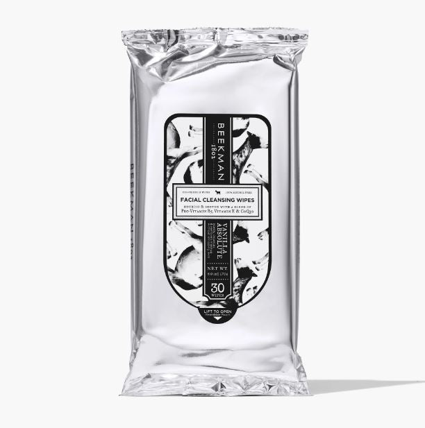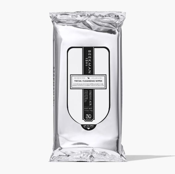 Wipe away the day with Beekman 1802's cleansing wipes, perfect for removing makeup, dirt, and impurities without stripping skin of its natural oils. Comes with a convenient resealable pouch to keep wipes fresh. Beekman's Facial Cleansing Wipes are 100% alcohol free and 100% biodegradable, as well as sulfate, paraben, and cruelty free.