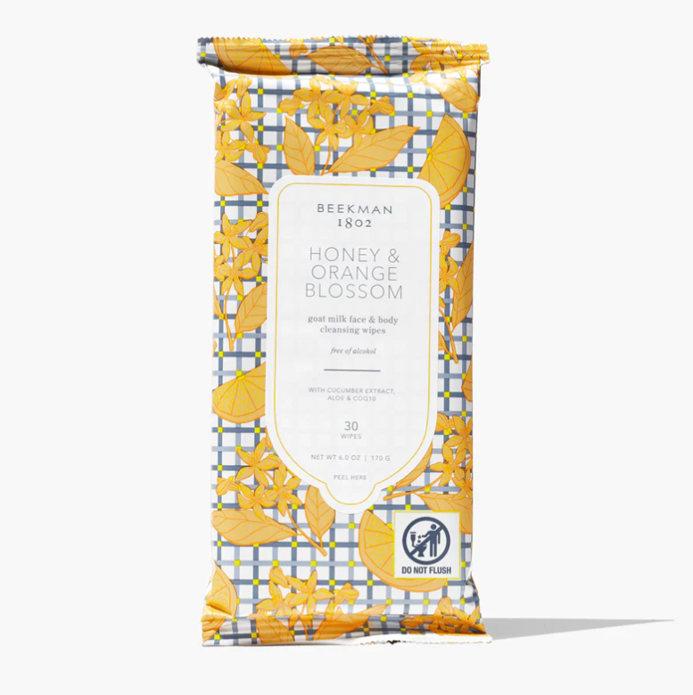These cleansing wipes are enriched with soothing goat milk, Vitamin C, and citrus stem cells to promote bright, healthy-looking skin while sparkling orange blossom and sweet honey leave behind an energizing scent.