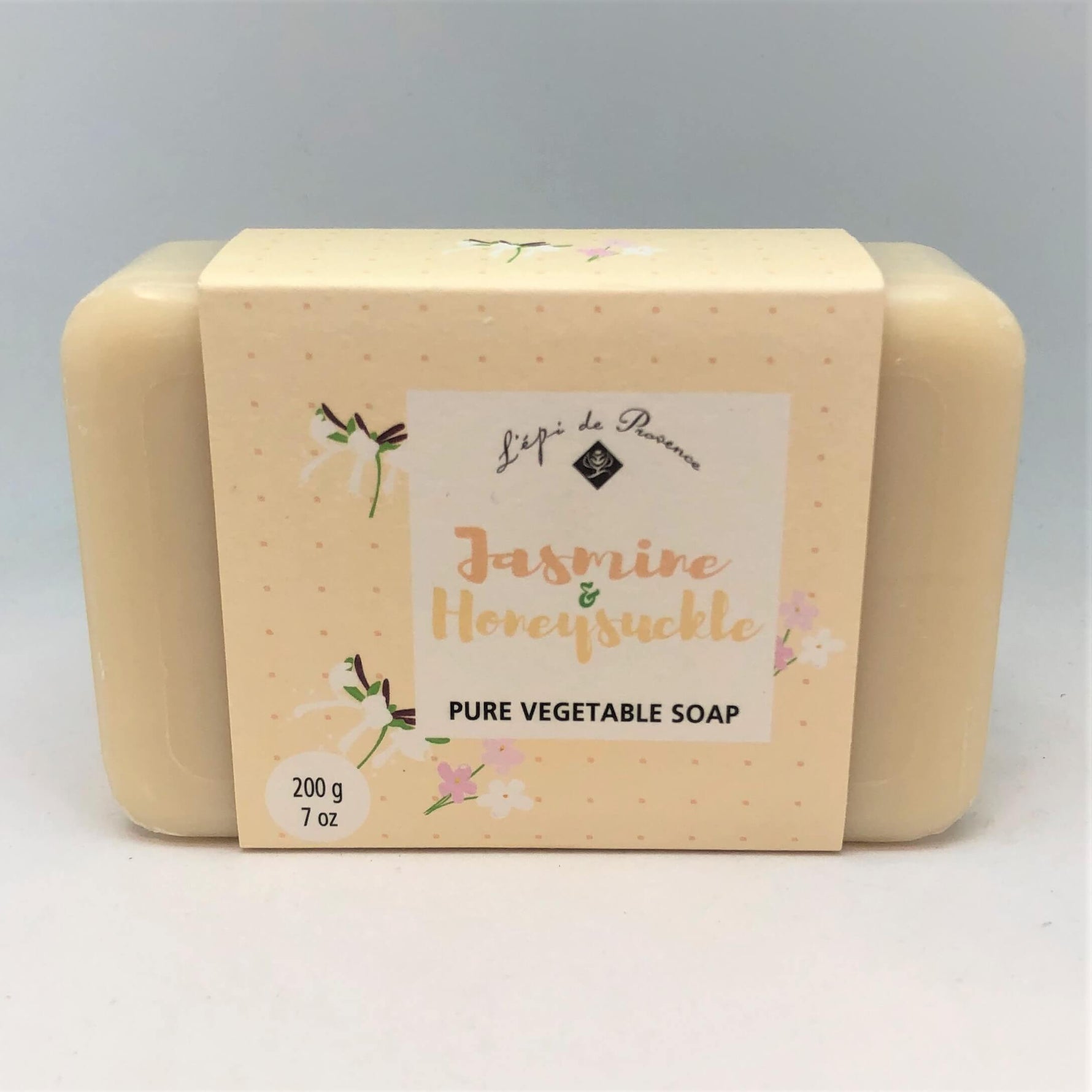 Jasmine and Honeysuckle bar soap from L’Epi de Provence is exquisitely scented and handcrafted with care to assure only the highest quality of pure vegetable soap. Crafted by hand in Provence, France, this soothing and nourishing soap is made with organic shea butter and argan oil to keep your skin feeling healthy and fresh.