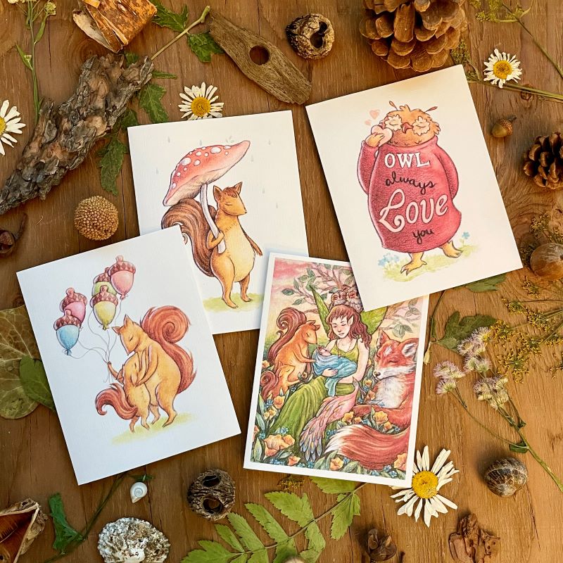 This greeting card features an original Illustration made with watercolor, gouache and colored pencil. Card is blank inside.