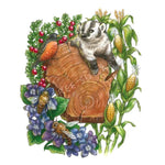 "Wisconsin Wildlife" - Inspired by the Wisconsin state symbols: the badger, robin, honeybee, cranberries, violets and corn. For any lover of the natural Midwest!