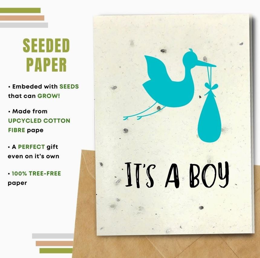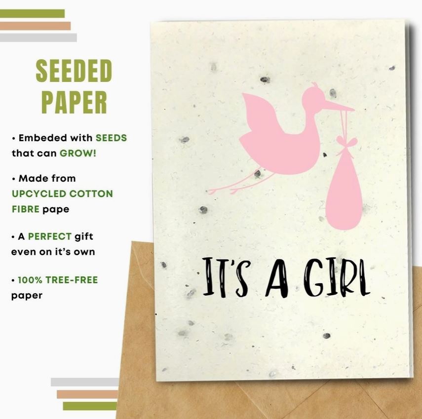 Choosing a card made with seeded paper will allow the receiver to plant it and turn their greeting card into flowers and plants! The paper is embedded with seeds that can grow! Made from upcycled cotton fibre.