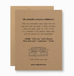 Seedy Cards are handmade using wildflower seed embedded paper that grows when it's planted! The handcrafted paper naturally biodegrades in the soil, and blooms into a variety of flowers that will return for many years to come.