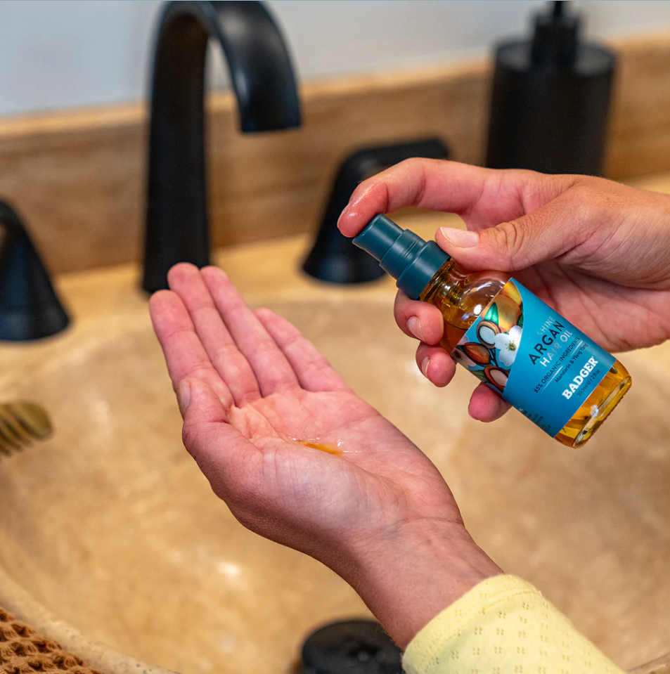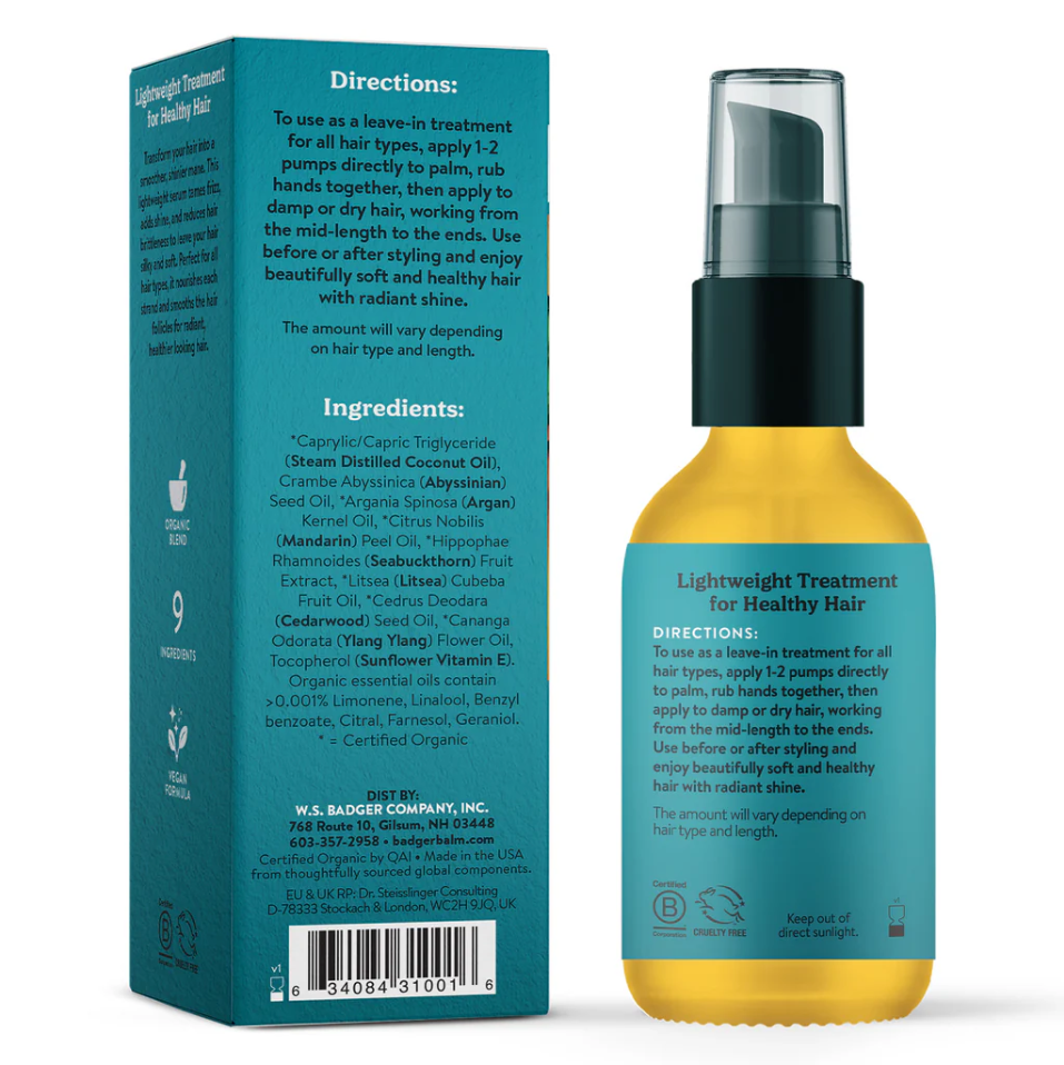 The right oil is the cornerstone for healthy hair. The Badger Argan Hair Oil is specially formulated to restore dry and damaged hair to its former glory. When hair is healthy, it looks shiny and bright because light reflects from its smooth surface. Damaged hair has a rough, uneven surface that creates split ends, knots up easily, and appears dull and lifeless. When nourishing oils such as the blend of Argan, Jojoba, and Baobab in this natural hair oil is applied to damaged hair, it reestablishes its healthy balance and protects hair from heat, chemicals, and UV damage.