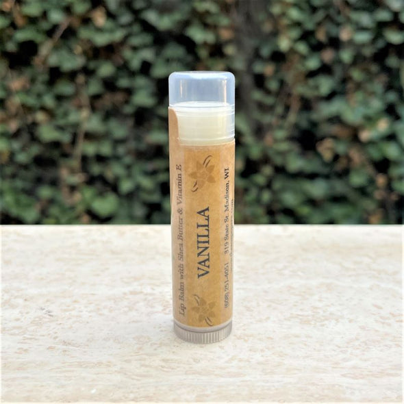 Natural, soothing lip balm with shea butter, cocoa butter, and aloe vera in a variety of flavor options! Protects your lips from the drying heat of summer and the punishing cold of winter.