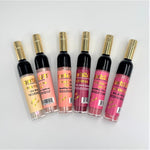 Let's toast! Wine lovers will love this adorable wine bottle shimmering lip tint. This sweet fruity scented lip gloss leaves behind a beautiful gloss, perfect for nights out on the town or sunny, day time wine tastings. Handmade with jojoba gel and grapeseed oil. perfect for pockets, purses, and gifts. Comes with a distinct wine bottle shape, look, and color.