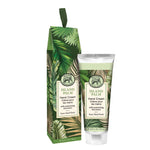 Gently swaying palms offer sanctuary from the tropical sun to create an idyllic island scene. Boasting notes of lush flowers and sweet fruits with tuberose highlights, this soothing large hand cream features a rich blend of moisturizing shea butter and other botanical ingredients. Ideal for easy gifting, it arrives in a beautifully decorated box.