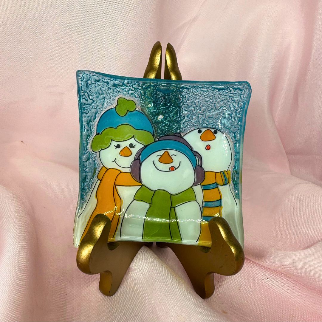 PamPeana Handmade Glass Soap Dish - Snow Men