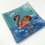 PamPeana Handmade Glass Soap Dish - Square Flamingo