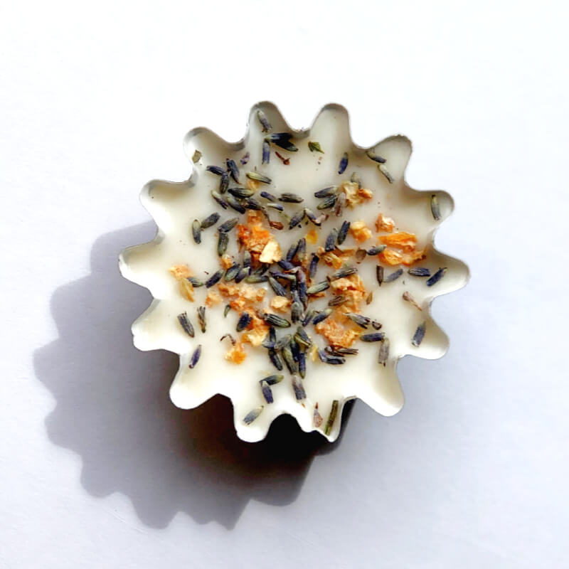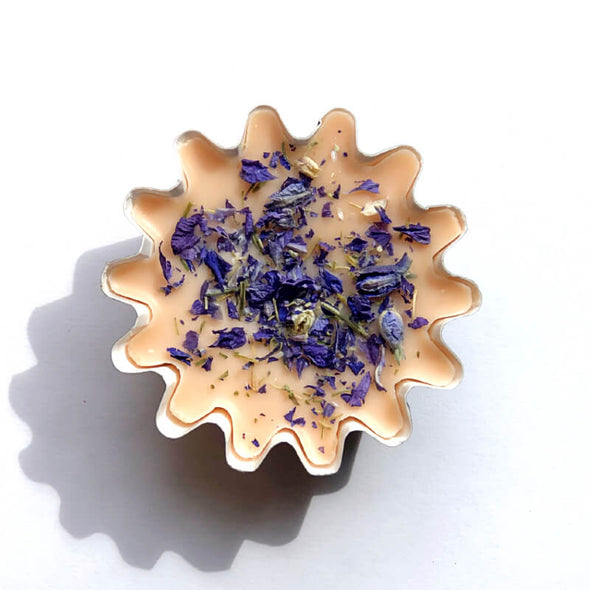 Scented with a bright, floral Lemon Lavender fragrance and dappled with real dried lavender and lemon pieces. Handmade with a soy base and natural ingredients.
