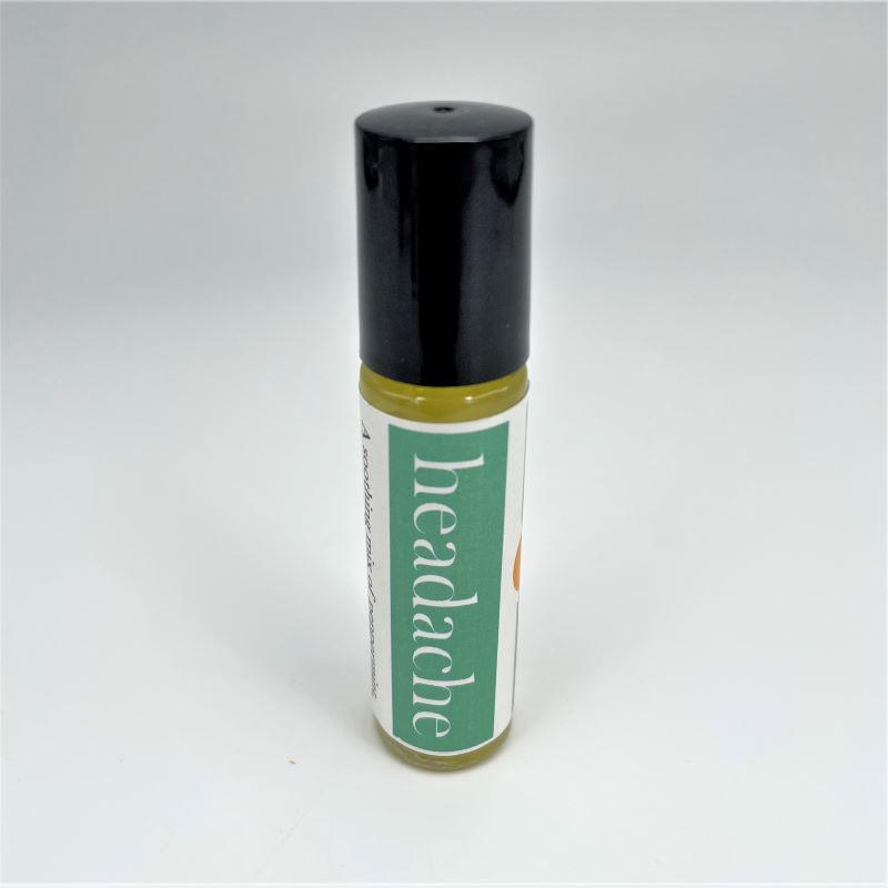 Headache Remedy: A signature Soap Opera Essential Oil blend that melts away tension and relieves headaches. Ingredients - Peppermint, Lavender, & Rosemary Essential Oils, Fractionated Coconut Oil, Jojoba Oil