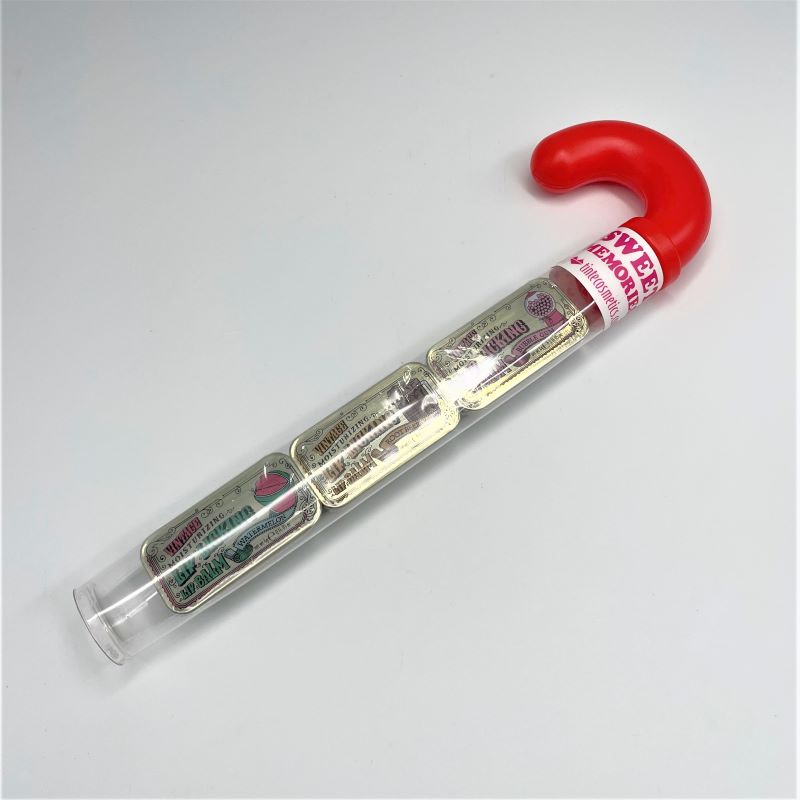 This fun gift set features 3 Vintage Lip Licking balm favorites, housed in a festive candy cane package. Enriched with creamy shea butter to give your lips a shiny, moisturizing gloss. The vintage slider tins and evoke nostalgia and happy memories while nourishing chapped lips.