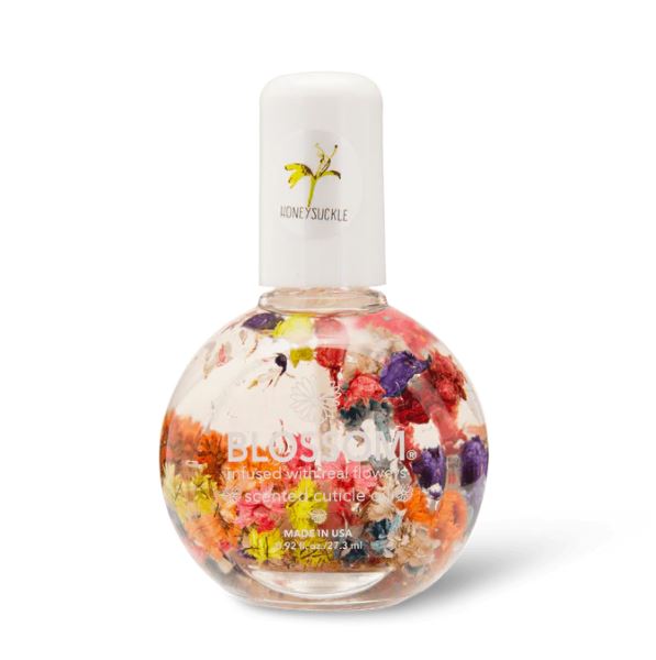 The Blossom Spring Bouquet Cuticle Oil softens, hydrates, and repairs dry cuticles. Blended with nourishing essential oils, this cuticle treatment strengthens and moisturizes the nails as it softens and hydrates cuticles. Scented with a fresh fragrance, this cuticle oil also adds a touch of perfume to your nails. Housed in a clear bubble bottle with real dried flowers, this cuticle oil looks as good as it smells. Also available in Lavender, Rose, Honeysuckle, Hibiscus, and Jasmine.
