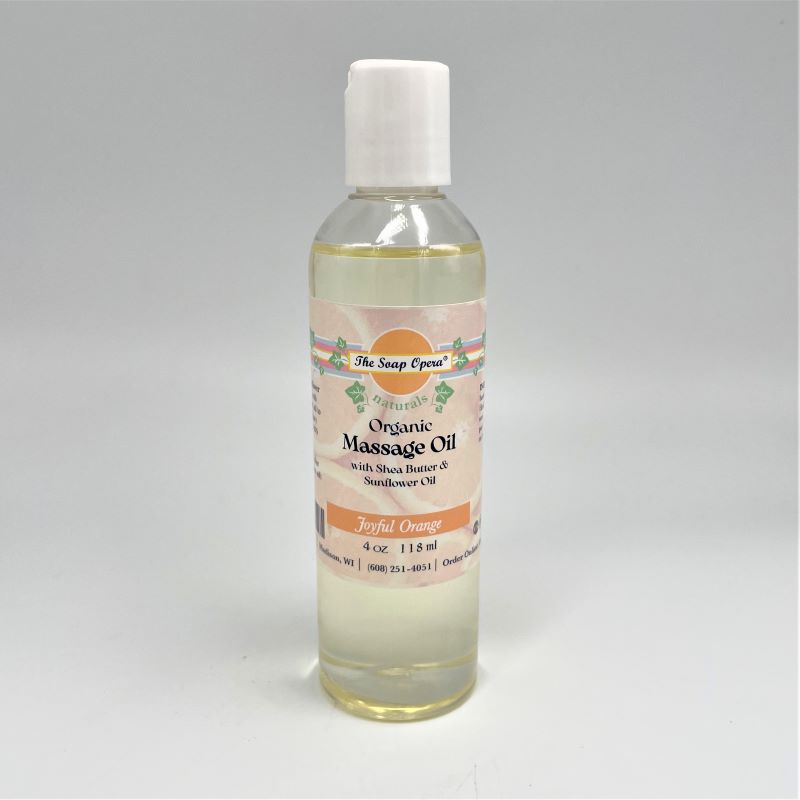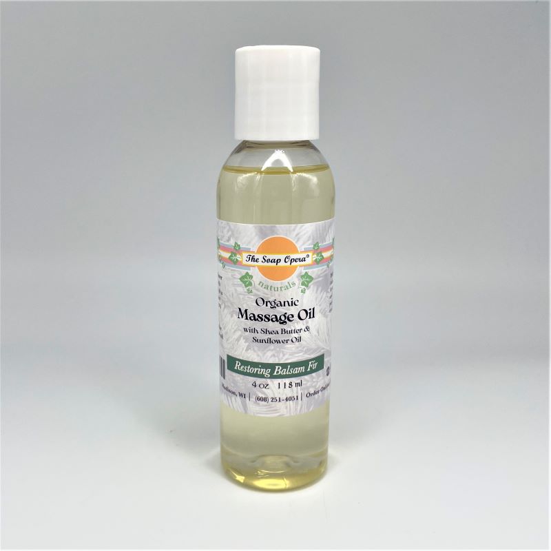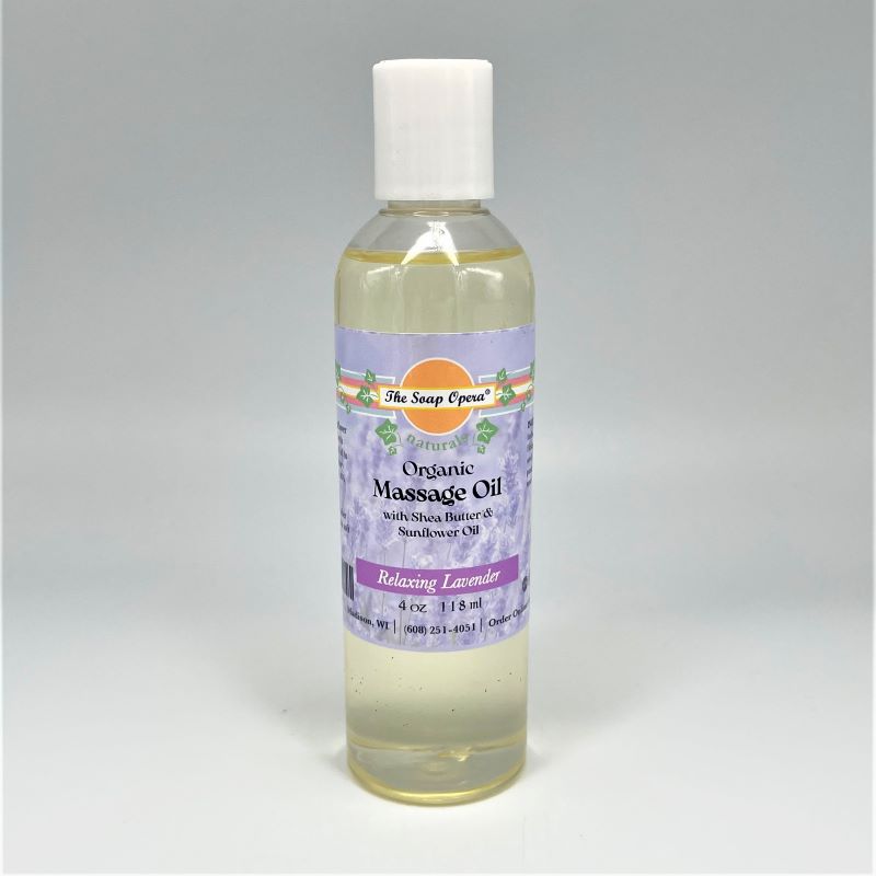 Keep your skin soft with The Soap Opera’s Organic Massage Oil. Certified organic sunflower seed oil is blended with moisturizing shea seed oil to create an extraordinary massage experience. Also available in Eucalyptus, Balsam Fir, Unscented, Lavender, Orange, and Chamomile.