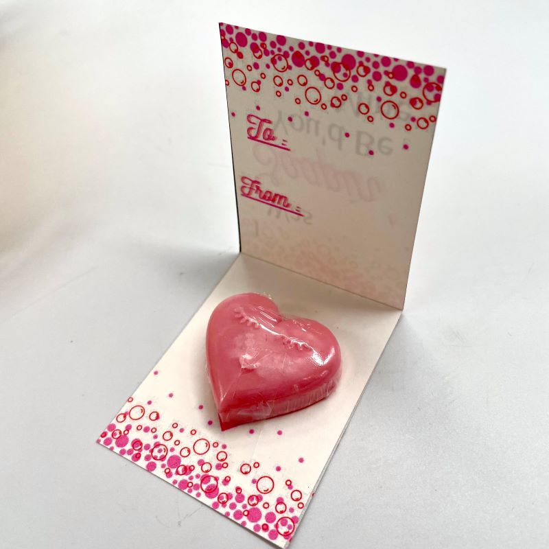 Spread some love and bubbles with these adorable valentines! They open up to reveal a mini heart soap inside! Purchase them individually or get a discounted 5-pack in a pink sachet!
