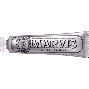 Experience Marvis Whitening Mint Toothpaste: a rich, creamy toothpaste giving an intense taste sensation. Helps remove plaque while whitening tooth enamel to make your smile brighter and more beautiful. What does it taste like? An arctic shiver. An ice crystal. A swirl of cold mint. Long lasting, like the smile it will give you. Available in 3.8 oz.