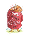 "Owl Always Love You" - This sweater-wearing bird isn't shy about expressing their affection!
