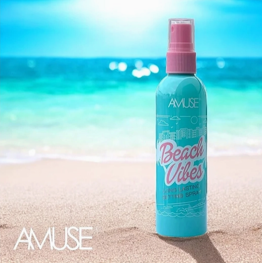 Amuse Cosmetics' Beach Vibes Setting Spray offers a weightless solution to secure your makeup with a revitalizing touch.