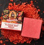 Spice up your shower game with Flamin' Hot Bricc, a fiery bar soap that packs a punch of bold spice and invigorating exfoliation. The lather is sprinkled with Cosmetic Sand and Jimmy Red Cornmeal, scrubbing away dirt and dead skin for a refreshing and smooth feel. And with an invigorating scent inspired by your favorite flamin' snack, the blend of Pink Pepper, Mandarin, and Sriracha will bring a fiery freshness to your senses. Get ready to feel revitalized and energized.