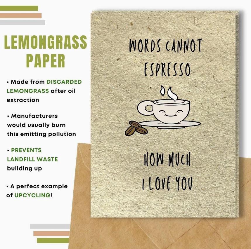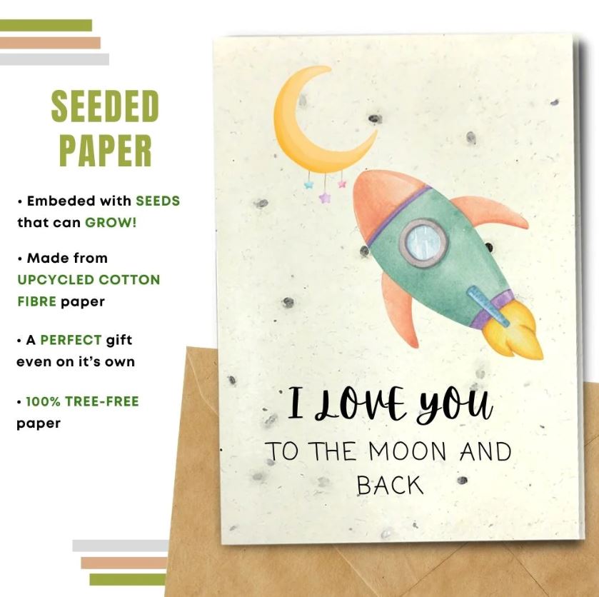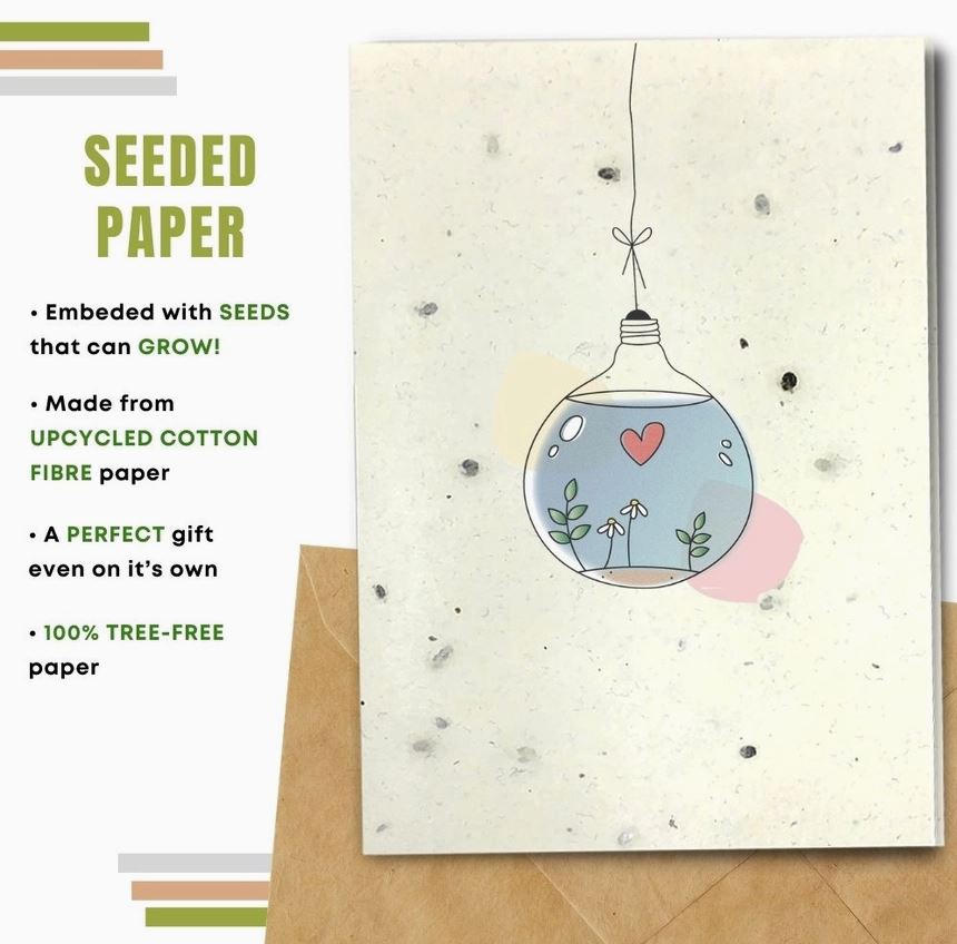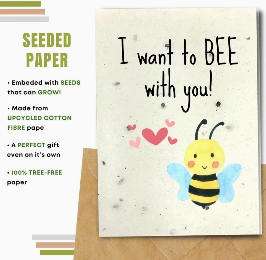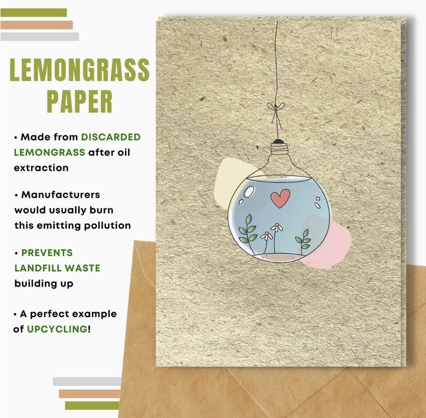 Choosing a card made with compostable paper will allow the receiver to plant it and turn their greeting card into flowers and plants! Made from natural and upcycled materials.
