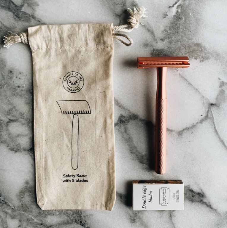 Essence of Life Organics Plastic-Free Safety Razor Starter Kit with 5 Blades - Rose Gold