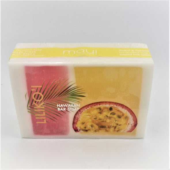 Embrace your wanderlust with a tropical Hawaiian bar soap enriched with creamy kukui oil, coconut oil, and vegetable glycerin. Fragranced with a sweet and tangy Liliko’i Passion fruit scent, this beautiful bar soap will leave you smelling like lush island fruit trees. Made in small batches with natural fruit and plant extracts.