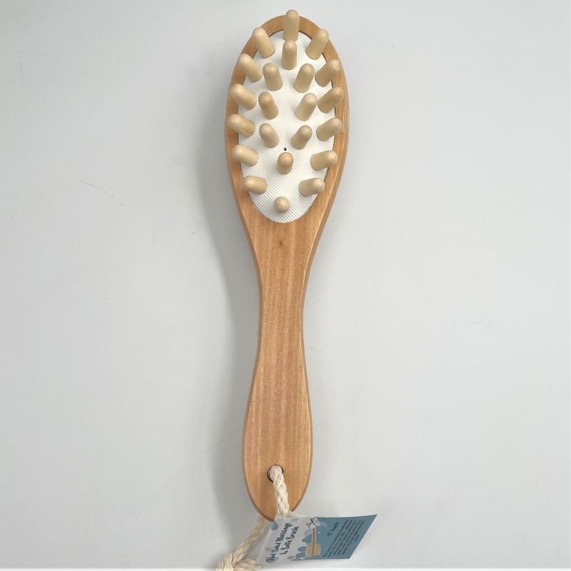 This multipurpose natural wood bath brush does double-duty for your skin - exfoliates and massages! Simply soften with warm water, pick a nice soap and scrub away for a sparkly clean and super-soothed result.